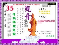 053期开奖时间2026年02月22 星期日)晚9:30开(农历正月初六 兔冲鸡)